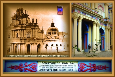 Poco se sabe que esta obra no fue el producto de la inciativa del gobierno, municipio o diócesis, sino exclusivamente de una Comisión de virtuosas y piadosas damas de la sociedad local, integrada por señoras, quienes constituyen una asociación civil de naturaleza religiosa para la erección de un edificio con advocación específica: Virgen La Candelaria de la Viña, destacándose entre ellas, la Sra. Andrea Oliva de Boedo, y su principal financista: el arquitecto Noé Macchi.