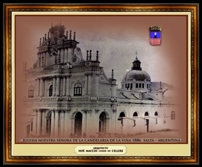 "... Su diseño y construcción corresponden al arquitecto y empresario toscano Noé Macchi, conde de Cellere –miembro de una aristocrática familia italiana al servicio del Papado...". Monumentos Históricos Nacionales de la República Argentina, Comisión Nacional de Monumentos, de Lugares y de Bienes Históricos, Arquitecto Mario Lazarovich, pág. 174).