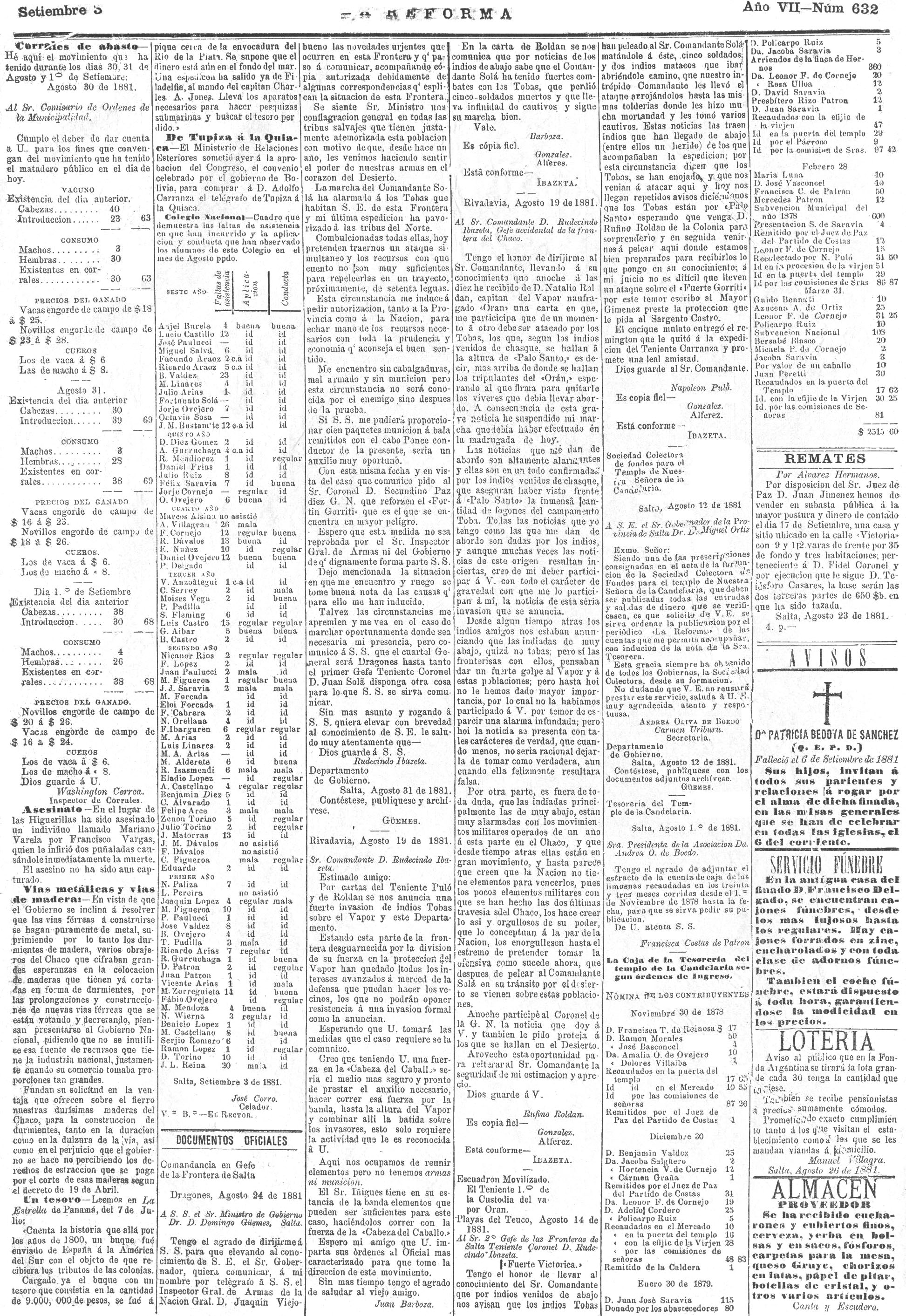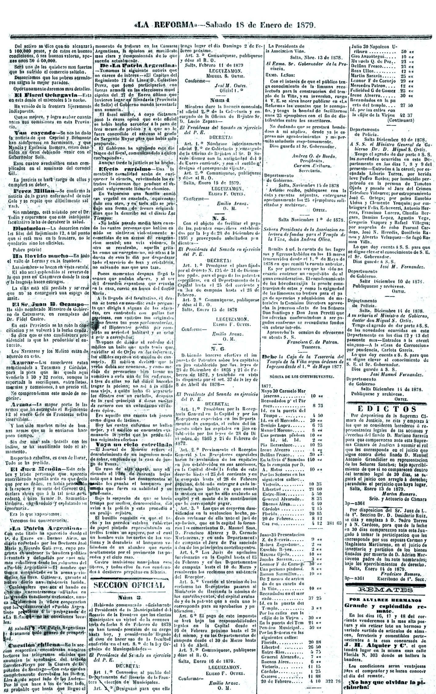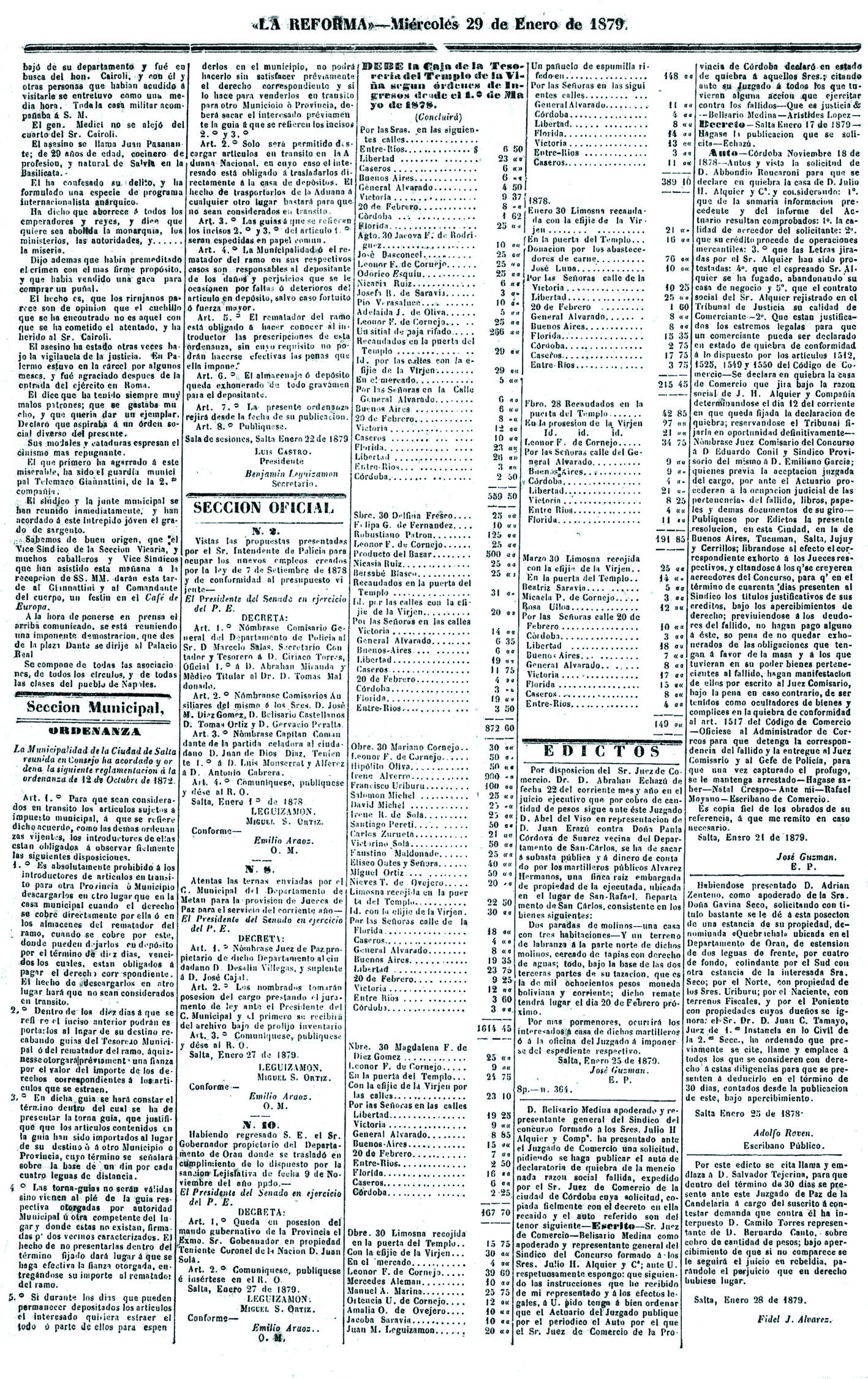 a. A título ejemplificativo: en el resumen de los cuadros de balances, el trianual del período 01My.1.877 al 31Oct.1.879, publicado en Diario La Reforma los días 18En., 29En. y 01Feb.1.879, surgen ingresos por la suma de $ 13.018,52, y gastos instrumentados por recibos abonados y no reintegrados al arquitecto Noé Macchi de $ 7.156,43