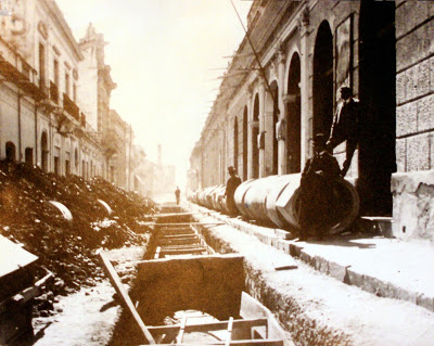 En la emergente Ciudad de Salta, concluida la infraestructura más relevante de edificaciones públicas mediante la realización del equipamiento comunitario en la escala ciudad, obras que mayoritariamente fueron realizadas por la empresa constructora de su padre Noé Macchi en la segunda mitad del siglo XIX, ejecutó obras de saneamiento ambiental posterior a la tan recordada epidemia del cólera del año 1.887, concretando a principios del siglo XX el tendido de servicios de infraestructura básica de redes de agua potable y cloacas en nuestra ciudad, también en la vecina provincia de Jujuy, y en la Ciudad de la Paz ( Bolivia ), esta última tras cuatro años de labores, obtuvo un reconocimiento presidencial. Al día de la fecha, las obras de cloacas del centro, salvo algunos sectores, siguen siendo las mismas, Y, en este contexto, Salta fue una de las primeras provincias en tener red cloacal, incluso antes que las provincias de Córdoba y Tucumán, y los caños que se usaron para instalar la primera red cloacal vinieron desde Inglaterra, y eran de barro vitrificado, un material que ya no se utiliza para la construcción, los que posteriormente fueron superados por caños de hormigón, y éstos desplazados por los de PVC.